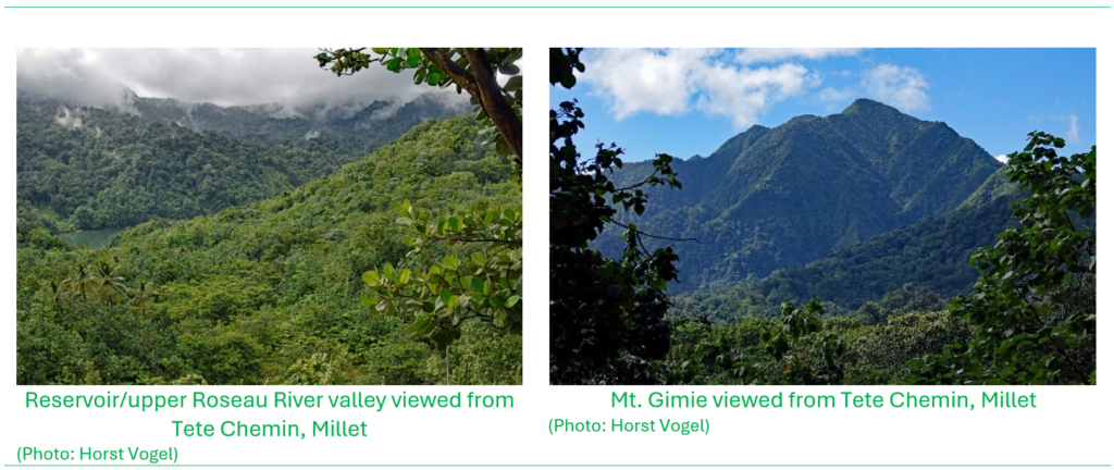 It was sometime in 1988 when the then Chief Forestry Officer Gabriel “Coco” Charles asked me to accompany two professionals, a botanist from Trinidad and Tobago and a geologist from Canada to the site of the proposed Roseau Dam in Millet, in the central mountainous region of Saint Lucia near Mt. Gimie, the island’s highest peak (950 metres). I was fresh from studies at the Cyprus Forestry College and had assumed the position of ‘Range Officer’ in charge of Millet Range. The two men were going to do a visual reconnaissance of the vegetation and the underlying rocks and geology prior to the commencement of the development of plans for the construction of the Roseau Dam. It was a beautiful sunny day and I was excited to accompany the mission to lend my expertise on forests and wildlife in the area.