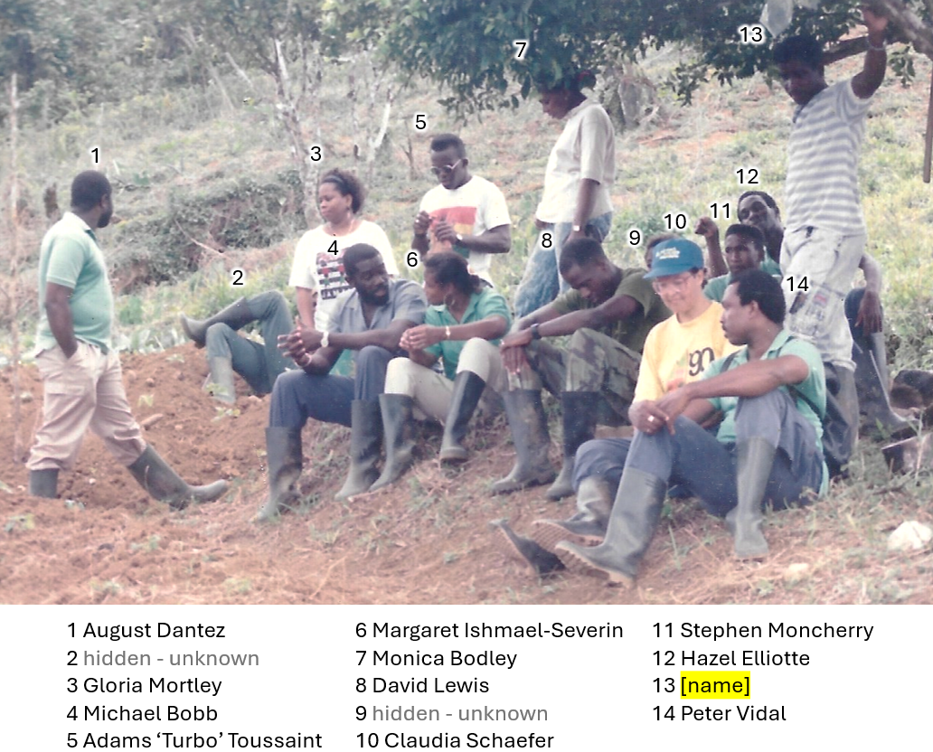 Tom Ward, an American Peace Corps volunteer assigned to Forestry for two years between 1993 and 1994 established sample plots in the Blue Mahoe and Honduras Mahogany plantations. During his time, he lived in the resthouse at Edmund Forest. There was also Leena, whose last name I cannot recall, another Peace Corps Volunteer who was based in Castries, supported the assessment work to find old forest plantations that became lost, and reidentify sample trees that had been tagged previously. During her field days she would stay at Fond St. Jacques and each morning the crew would pick her up to go to Edmund Forest.