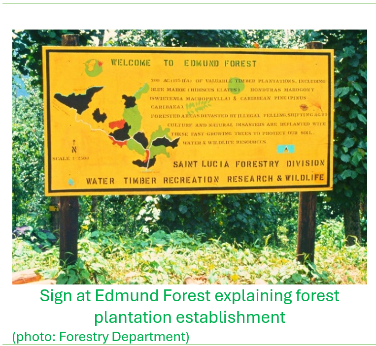 From the early 1980s up until 1992 there was an ongoing major project on improving forest management in Saint Lucia that was funded by the Canadian International Development Agency (CIDA). The project greatly assisted building the management capability of the Forestry Division, that became upgraded to a Department, with staff trained at certificate, diploma and university levels at specialised colleagues and universities in Trinidad and Canada. The project also enhanced the expansion of forest protection and reforestation programmes across the island. I found that the Canadian forestry management experts assigned to the project tended to be oriented toward expanding commercial forestry operations, advocating for stepped up management effort to maintain and commercialize operations in these plantations.