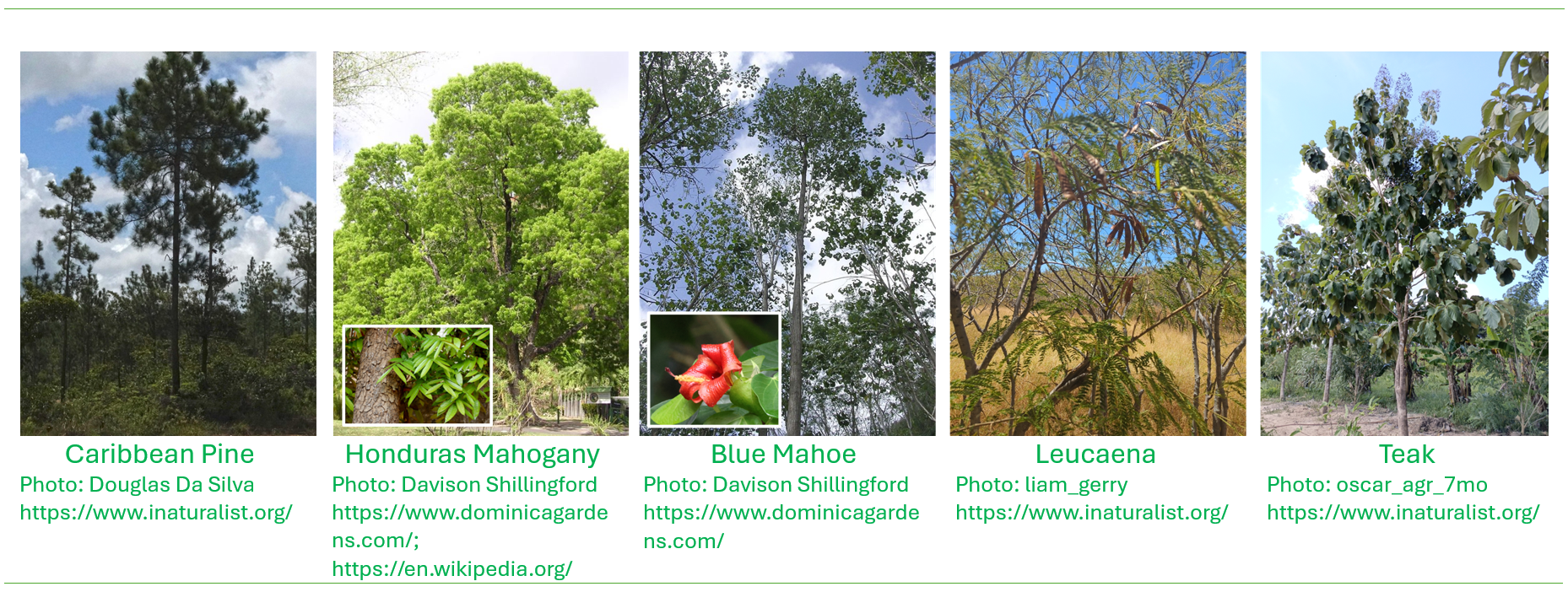 Besides the Taungya system the Forestry Division had a long history of ‘forest enrichment’, a practice where tracts of forests that were somehow deemed less commercially important, were ‘enriched’ through the planting of exotic timber species, in the process clearing away in rows, native or indigenous trees and vegetation that were considered of having little commercial value and replaced by commercially introduced important species. The idea was that over time these trees would mature into commercial forest plantations. In those days there was not much thought given to the consequences on native biodiversity in these reforestation efforts where the ultimate result was establishment of non-native mono-crop tree plantations of almost exclusively Caribbean Pine (Pinus caribaea), Honduras Mahogany (Swietenia macrophylla), Blue Mahoe (Hibiscus Elatus), Leucaena (Leucaena leucocephala) and Teak (Tectona grandis). These species were either relatively fast-growing with the benefit of soil conservation, or valuable for the provision of timber. Following the passage of Hurricane Allen in August 1980, forest enrichment by line planting was undertaken as the thinking was that it would lead to faster forest recovery. We have since learned that some of these exotics for example Leucaena, are highly invasive and damaging to the native environment.