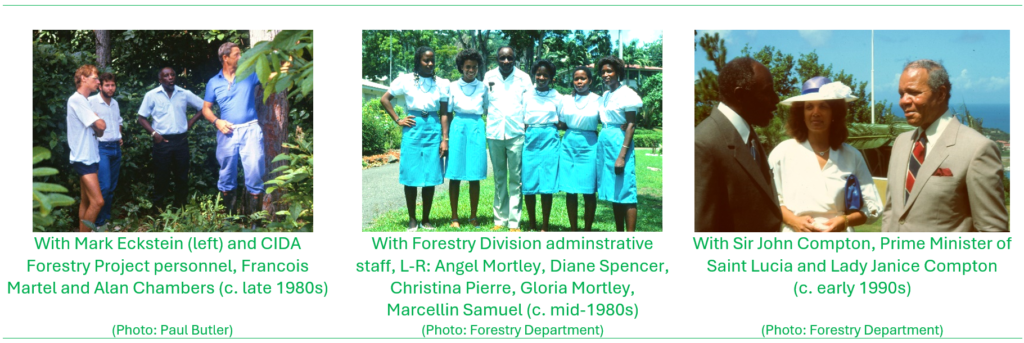His inspiration and work also transformed the Forestry Division from a small division to a full fledged department and his work has motivated many young St. Lucians within the Forestry Department and outside to pursue careers in Forestry and Environmental Management.