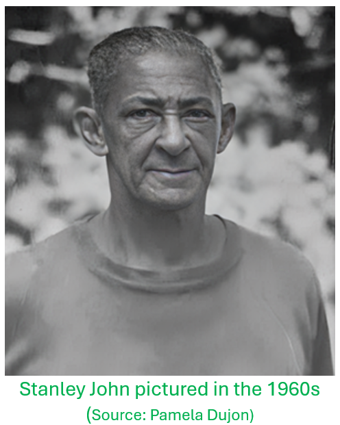 Stanley would walk for long distances from his home in Forestiere to seek out wildlife in locations like Grand Anse, and other wild and remote areas in the northern part of the island. He collected a wide variety of specimens; besides birds for museum collections, he would also collect snake skins where some of these would find their way to collections in the Ministry of Agriculture, which had management responsibility for the Forestry Division. According to Calixte George Sr. (whose father was a friend of Stanley John) Stanley authored a weekly series in the Voice of Saint Lucia newspaper in the early 1950s in which he described the birds of the island. He travelled to some of the other islands on trips likely related to natural history, in association with his work. In 1975 he accompanied as lead guide, David Jeggo, Deputy Curator of Birds of the Jersey Wildlife Preservation Trust (now Durrell Wildlife Preservation Trust), along with Stephen Jovicich of Houston, Texas and supported by Julian King of the Forestry Division, in the first population survey of the St. Lucia Parrot in the central forests between Millet and Mt. Gimie. That first survey raised the alarm about the extreme rarity of the parrot, where the population was estimated to be somewhere between 100 to 150 birds.